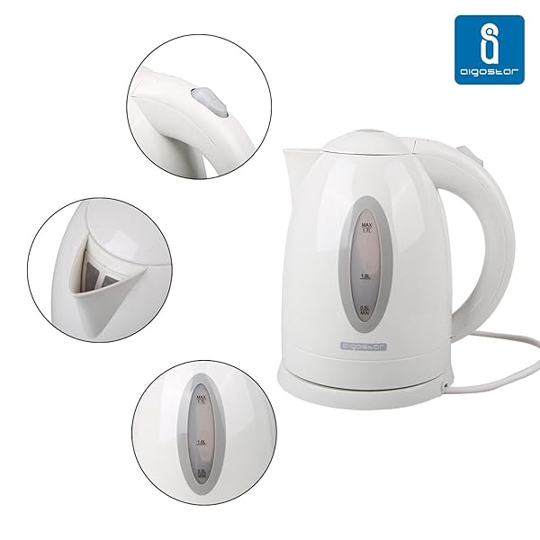 L’Aigostar Sea 30CDW è un altro bollitore elettrico per far bollire l’acqua dall’ottimo rapporto con-prezzo. Quello che prendiamo in considerazione in quest’articolo è un modello fatto, per quanto riguarda il corpo esterno principale, in plastica dura. Su uno dei lati è presente una finestrella con relativo indicatore (a tre tacche: 0,5 l, 1 l e 1,7 l) per comprendere il livello di liquido all’interno mentre nella parte superiore è presente lo sportellino apribile con molla scatto.