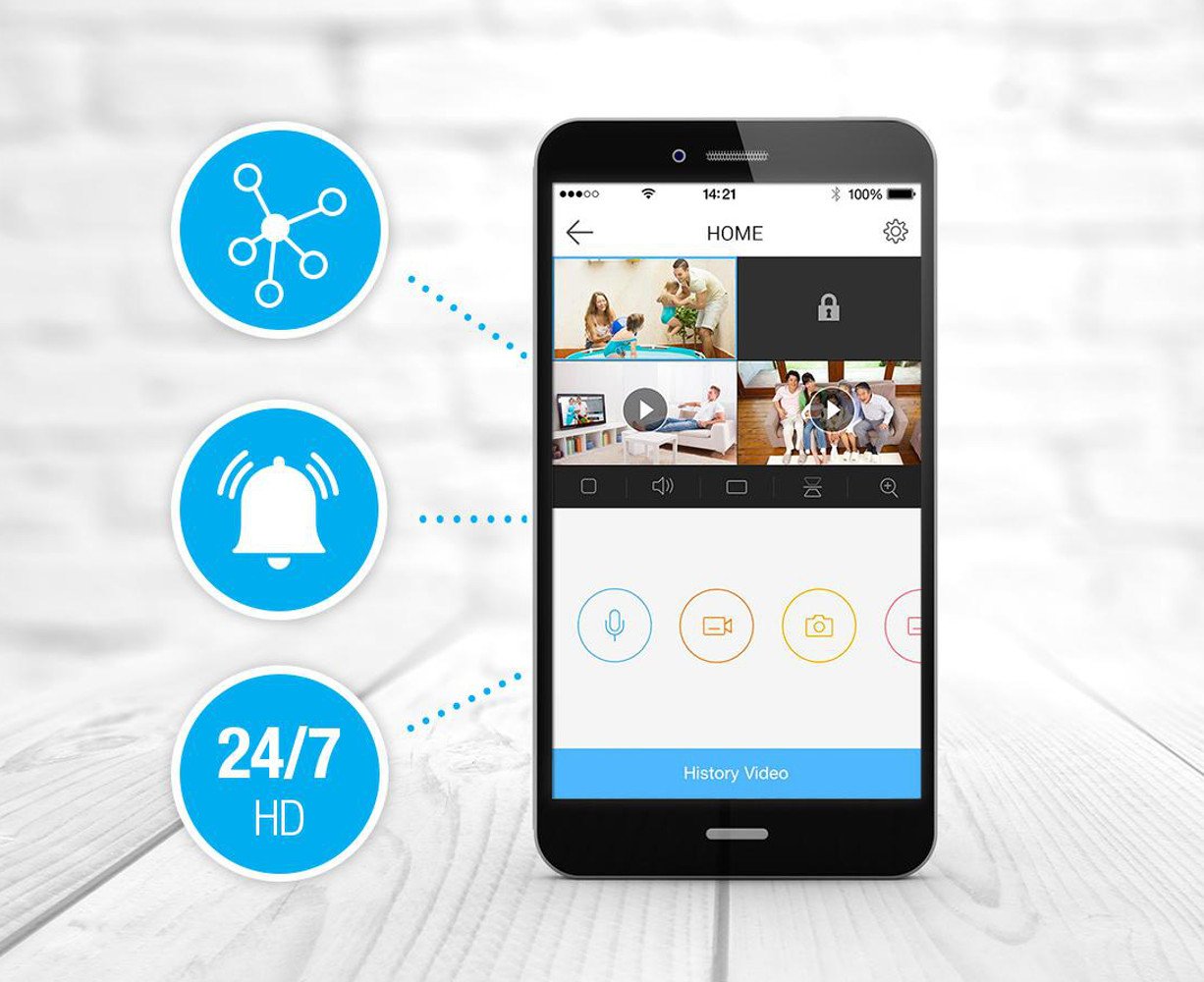 È presente anche l’app tramite la quale si potrà tenere sotto controllo la stanza dove la telecamera e posta anche sul cellulare o sul tablet.